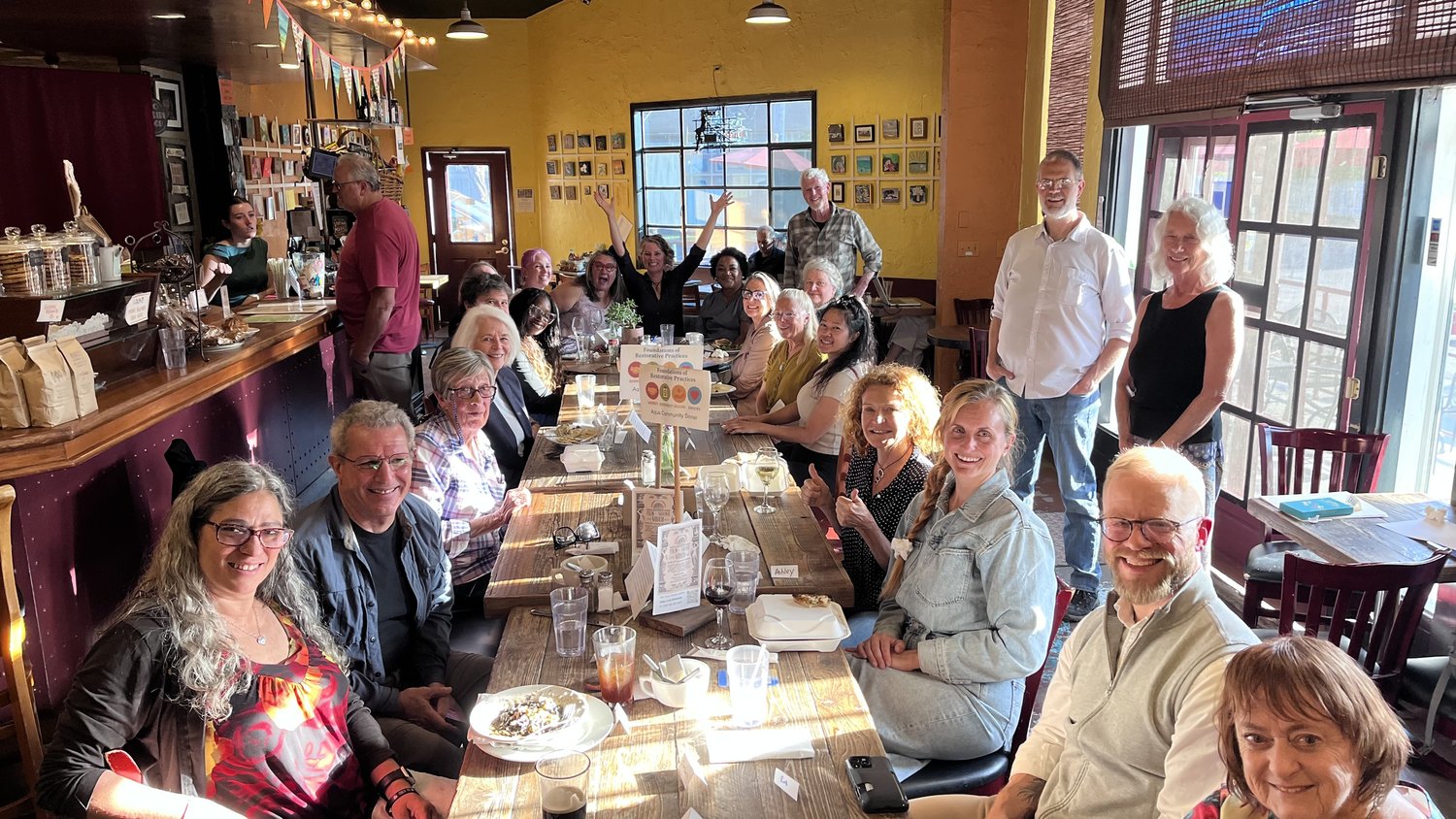 The concept is simple: people with shared interests, skills or experiences gather for a meal at Aqus Café.  It’s easy, no planning, no cooking and no organizing. Just show up, enjoy great food, meet like-minded people and get to know each other.  To make the experience even more welcoming and inclusive, each guest makes a seating place card with their name on it. Then, every 30 minutes, attendees are invited to switch seats so they can meet and engage with multiple people throughout the evening.  This simple format fosters a sense of belonging and inclusivity, ensuring that everyone leaves knowing more people than when they arrived.